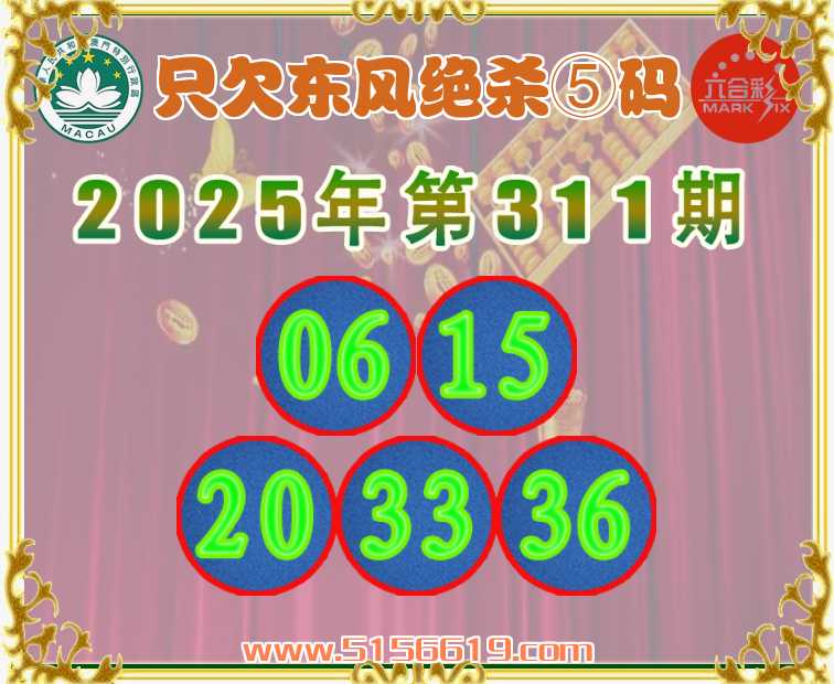 311期:〖只欠东风〗 ✌️绝杀⑤码✌️【06.15.20.33.36】开:蛇37准上榜高手