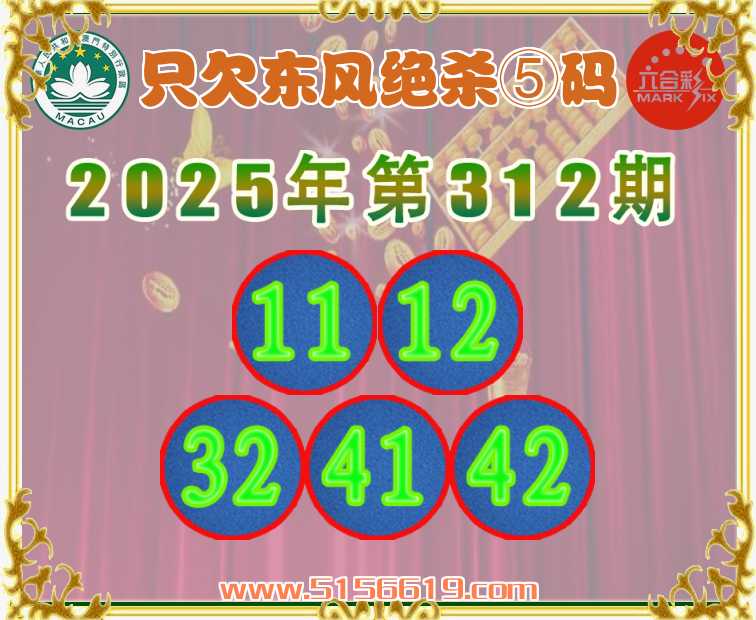 312期:〖只欠东风〗 ✌️绝杀⑤码✌️【11.12.32.41.42】开:龙14准上榜高手
