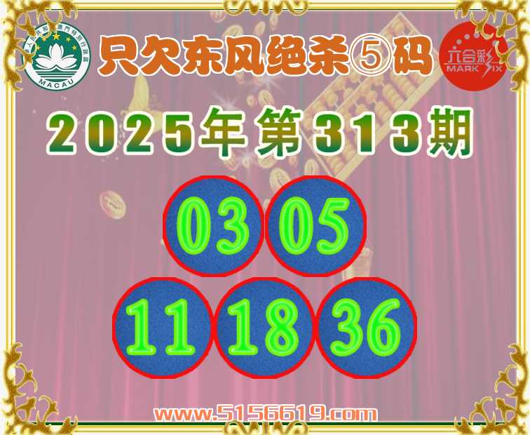 313期:〖只欠东风〗 ✌️绝杀⑤码✌️【03.05.11.18.36】开:龙38准上榜高手