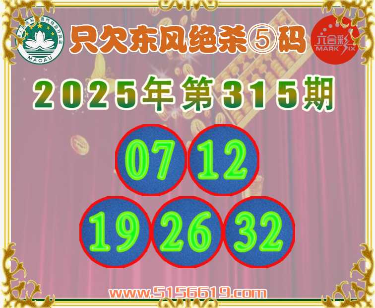 315期:〖只欠东风〗 ✌️绝杀⑤码✌️【07.12.19.26.32】开:虎04准上榜高手