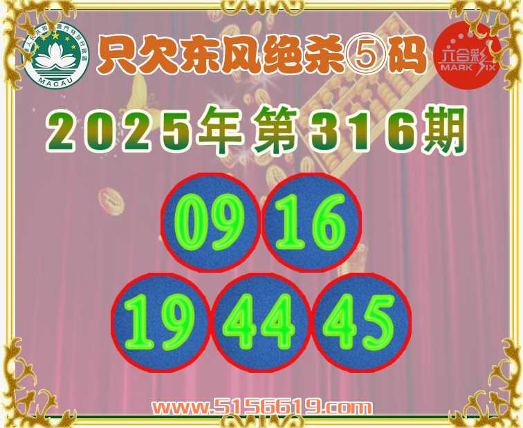 316期:〖只欠东风〗 ✌️绝杀⑤码✌️【09.16.19.44.45】开:马24准上榜高手