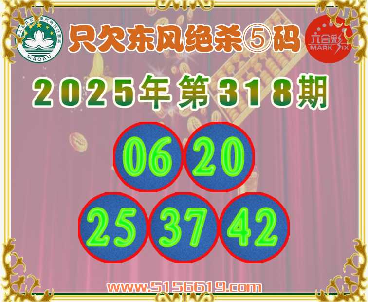 318期:〖只欠东风〗 ✌️绝杀⑤码✌️【06.20.25.37.42】开:00准