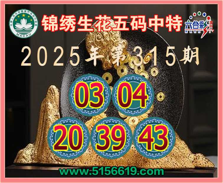 315期: 🌷『锦绣生花』 🌷五码中特🌷【03.04.20.39.43】开:04准上榜高手