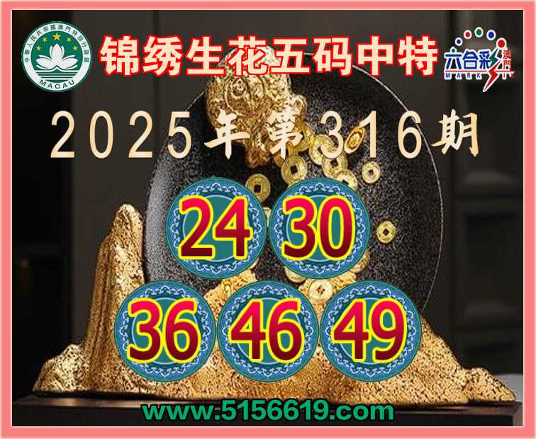 316期: 🌷『锦绣生花』 🌷五码中特🌷【24.30.36.46.49】开:24准上榜高手