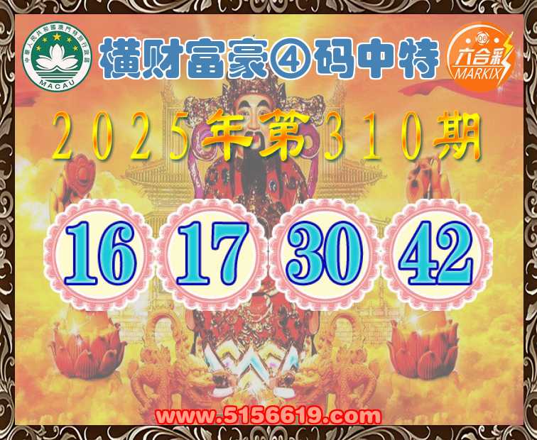 310期:《横财富豪》 👛④码中特👛【16.17.30.42】开:16准上榜高手