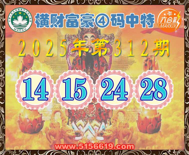 312期:《横财富豪》 👛④码中特👛【14.15.24.28】开:14准上榜高手