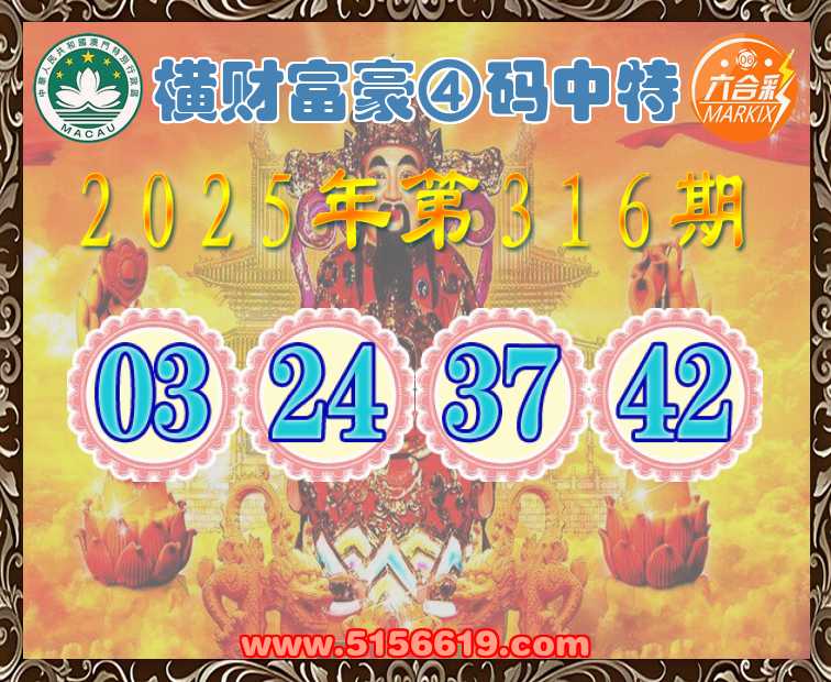 316期:《横财富豪》 👛④码中特👛【03.24.37.42】开:24准上榜高手