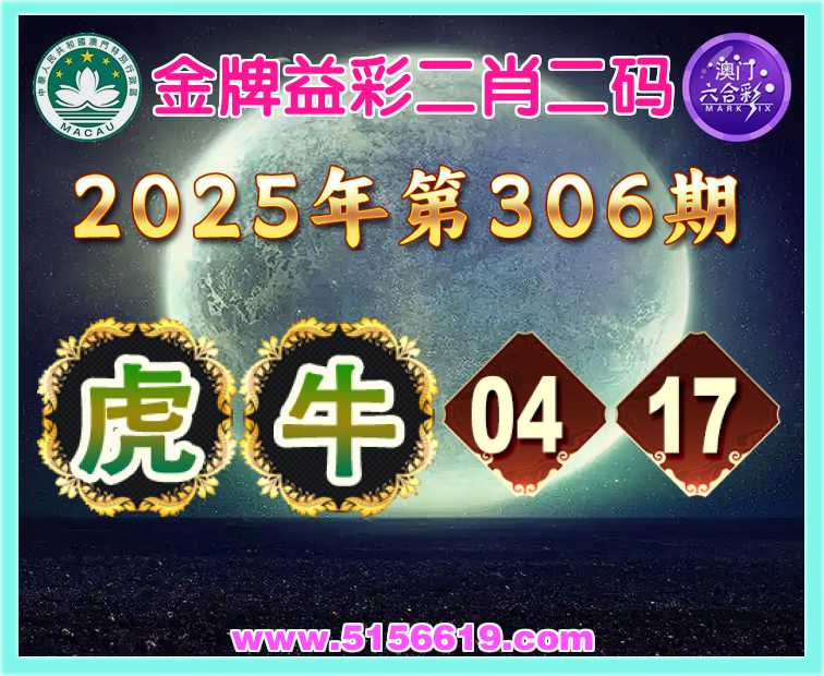 306期:《金牌益彩》 🍀二肖二码🍀【虎】【04.17】开:牛17