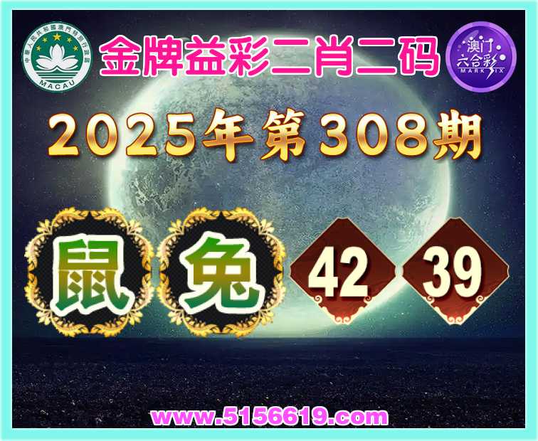 308期:《金牌益彩》 🍀二肖二码🍀【鼠】【42.39】开:兔39