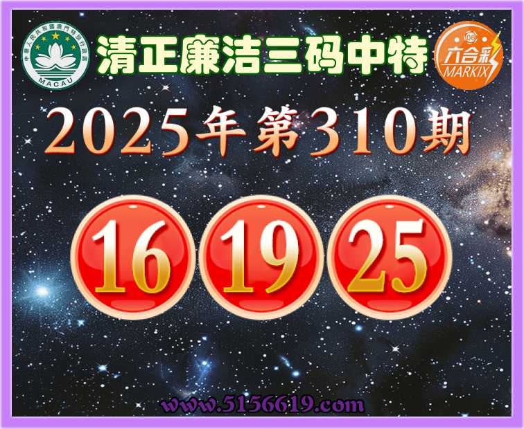 310期:【清正廉洁】 🥓三码中特🥓【16.19.25】开:16