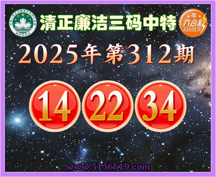 312期:【清正廉洁】 🥓三码中特🥓【14.22.34】开:14