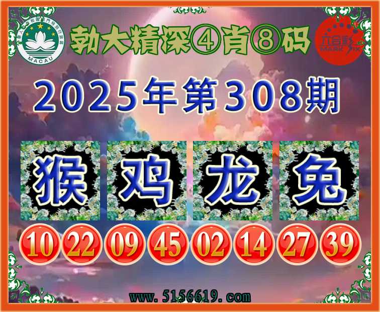 308期:『勃大精深』 🚣④肖⑧码🚣【猴鸡龙】开:兔39