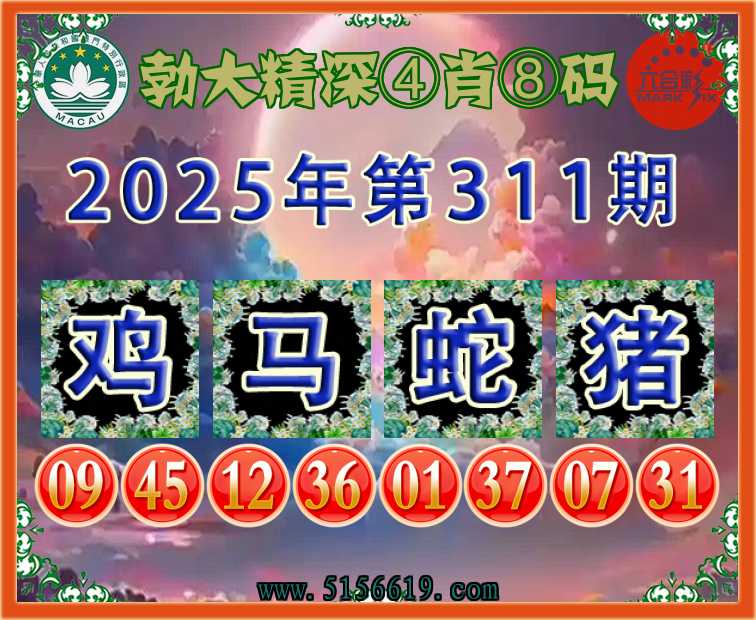 311期:『勃大精深』 🚣④肖⑧码🚣【鸡马猪】开:蛇37