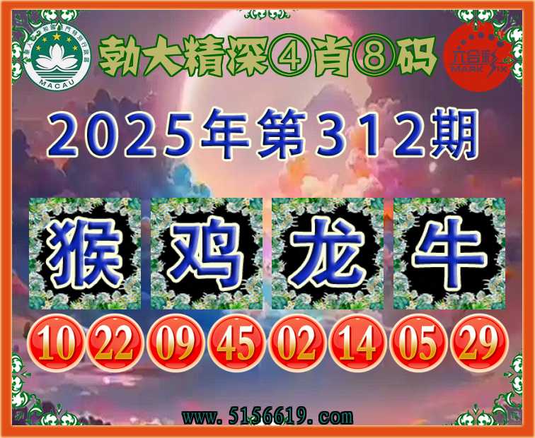 312期:『勃大精深』 🚣④肖⑧码🚣【猴鸡牛】开:龙14