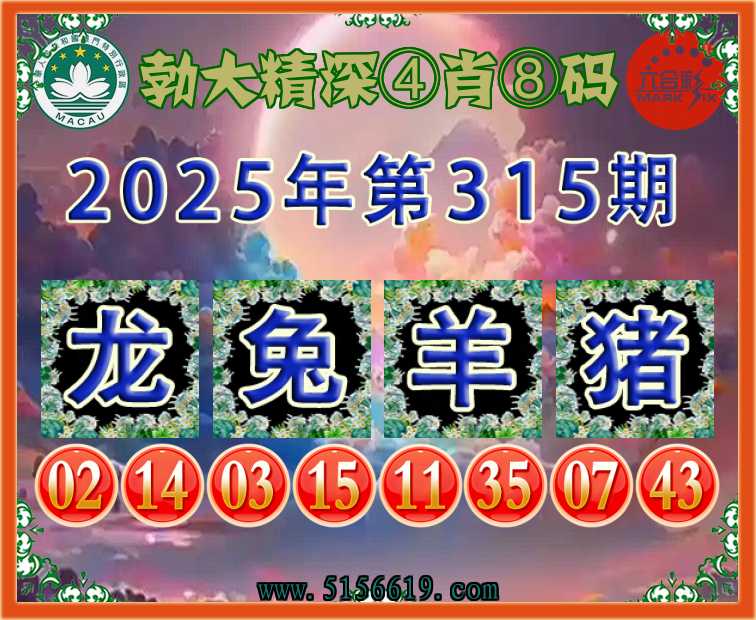 315期:『勃大精深』 🚣④肖⑧码🚣【龙兔羊猪】开:虎04