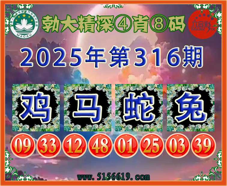 316期:『勃大精深』 🚣④肖⑧码🚣【鸡蛇兔】开:马24准上榜高手