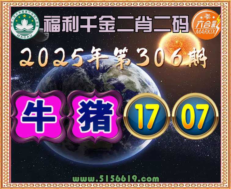 306期:《福利千金》 ✌️二肖二码✌️【猪】【17.07】开:牛17