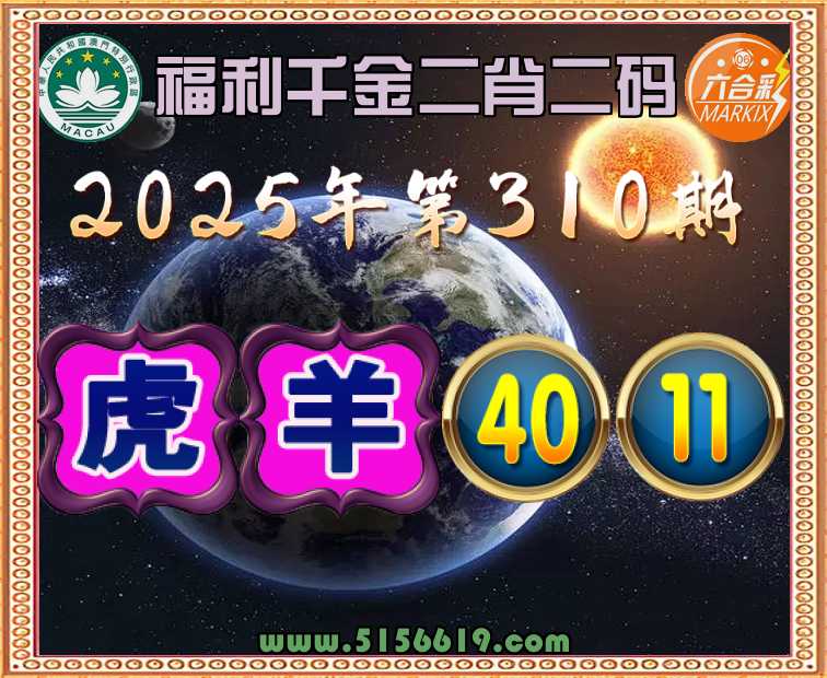 310期:《福利千金》 ✌️二肖二码✌️【羊】【40.11】开:虎16
