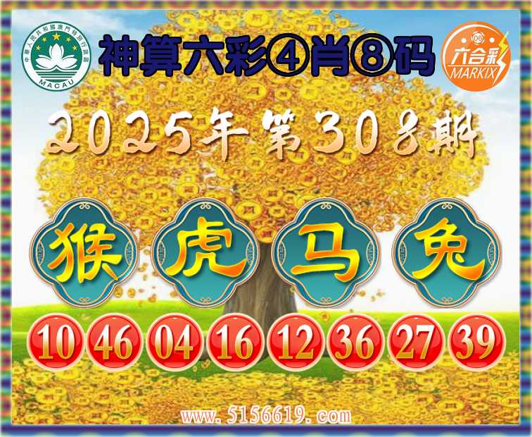 308期:《神算六彩》 🌳④肖⑧码🌳【猴虎马】开:兔39
