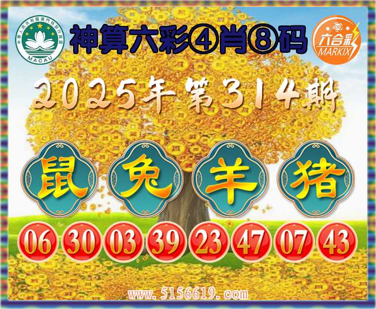 314期:《神算六彩》 🌳④肖⑧码🌳【鼠兔猪】开:羊23