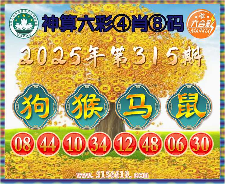 315期:《神算六彩》 🌳④肖⑧码🌳【狗猴马鼠】开:虎04