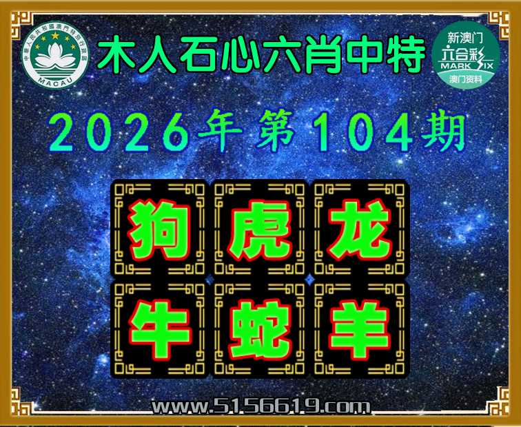 104期: 📙『木人石心』 📙六肖中特📙开:马01