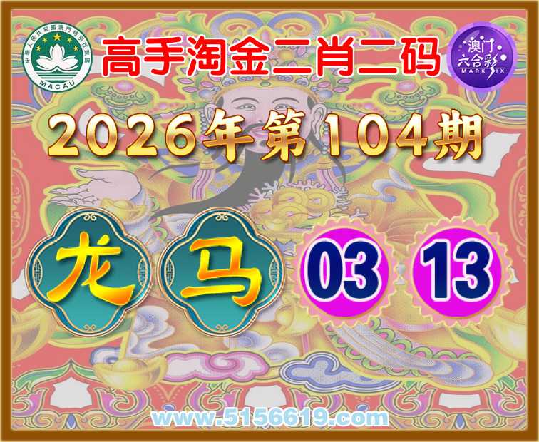 104期:《高手淘金》 ♦️二肖二码♦️【龙】【03.13】开:马01准上榜高手